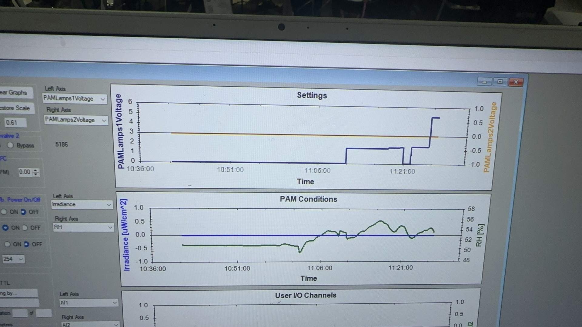 2. Please send me a photo of the front panel of the PAM electronics box – I’d like to check that the toggle switches next to the “O3 Lamp”, “PAMLamps1”, and “PAMLamps2” connectors are in the “ON” positions.
